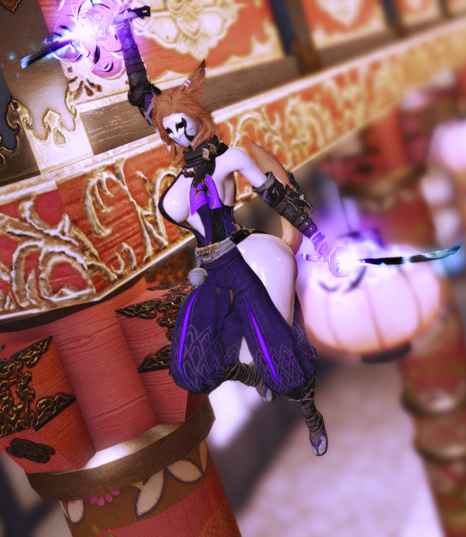 Fox changed vessels several times during her stay in Etheirys and for her lack of luck, the last body she inhabited was the body of a blind Hingashian Miqo'te that had recently passed away. Fox avoids any visits to Hingashi not to raise any suspicion about her magic resurrecting the vessel to maintain Hyne's magic alive.